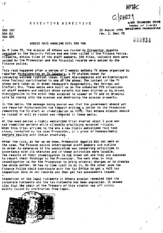 how the Greek Scientologists reported the raid.
